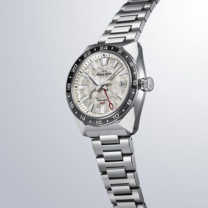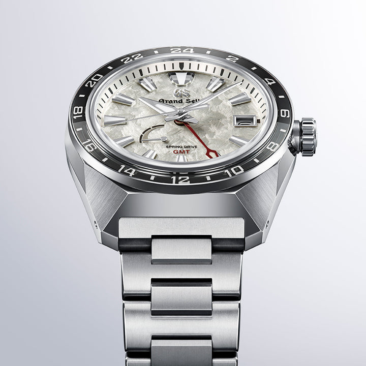 1960年の誕生以来、グランドセイコーは百獣の王と称される「獅子」をブランドシンボルとしてきました。凛々しさと猛々しさを併せ持つその獅子の威厳を体現させるべく、このモデルでは、前脚や爪、たてがみを想起させる屈強な外装を採用しました。獅子の爪を見立てたラグは、金属の塊のエッジを切り落としたような大胆な形状が特徴。重厚感のあるケースは、獅子の前足が腕を掴んでいるようなしっかりとした装着性を実現しています。シャイニーホワイトのダイヤルに、赤褐色のGMT針がさりげなくその存在感を主張。また、インデックスと針に施したルミブライト(発光塗料)による夜間の高い視認性や、20 気圧防水の高い防水性能など、スポーツウオッチにふさわしい高い実用性を発揮。平均月差±15秒(日差±1秒相当)の高精度なスプリングドライブのGMT機能付きムーブメント「キャリバー9R66」を搭載し、ストップウオッチ針や秒針の流れるようなスイープ運針の動き、GMT針の存在などがスポーティな印象を加速させます。
