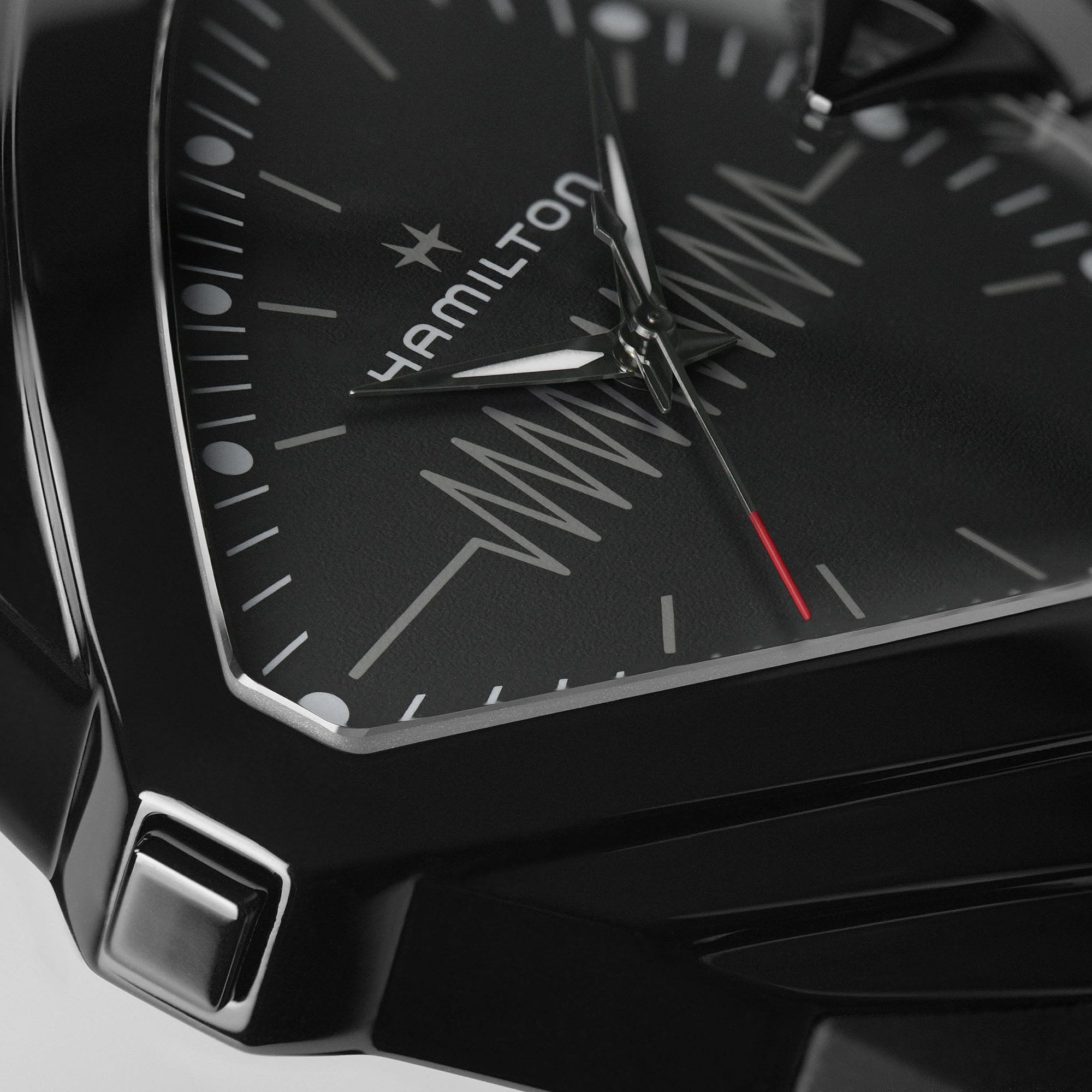 ライトアップダイヤルを備え、夜を明るく照らすエキサイティングな「ベンチュラ XXL ブライト」。1957年に世界初の電池式腕時計として発表された革新のシンボル 「ベンチュラ」 は、誕生から65年もの時を経た今も、進化を遂げながら輝き続けています。